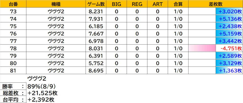 | 26 | 73 | ヴヴヴ2 | +3,020枚 |
