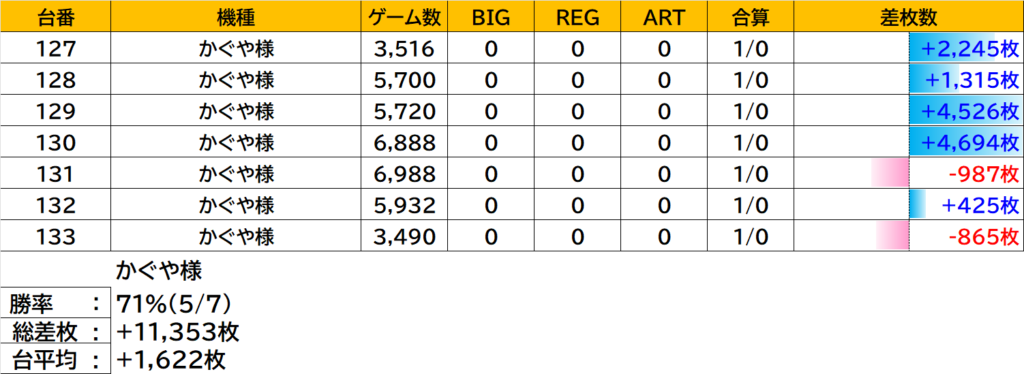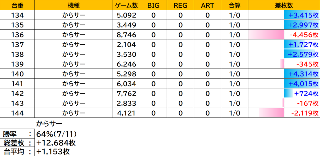 | 25 | 93 | 沖ドキG | +3,059枚 |
