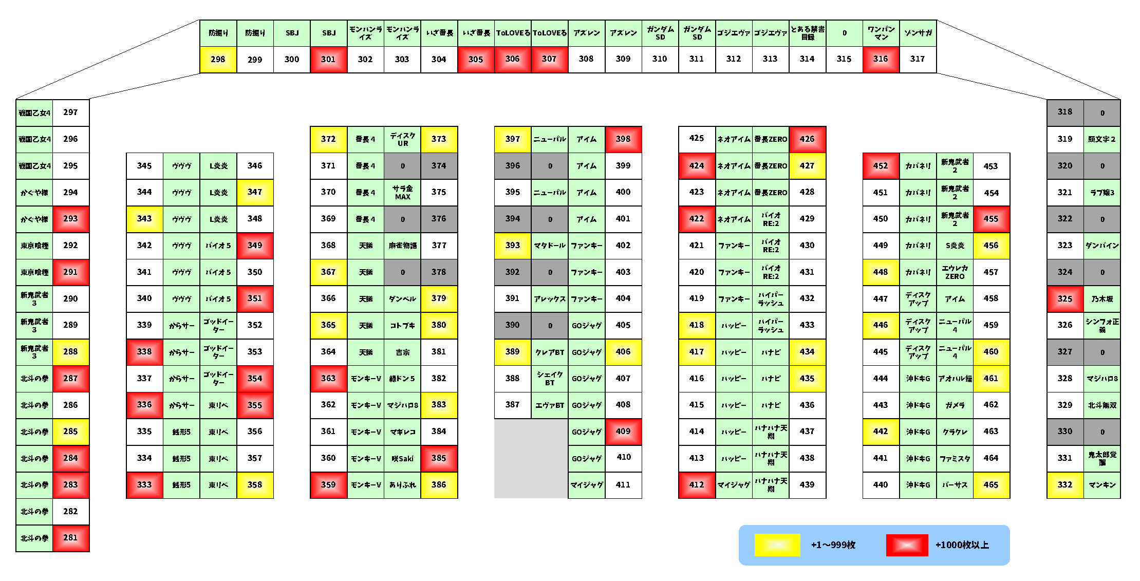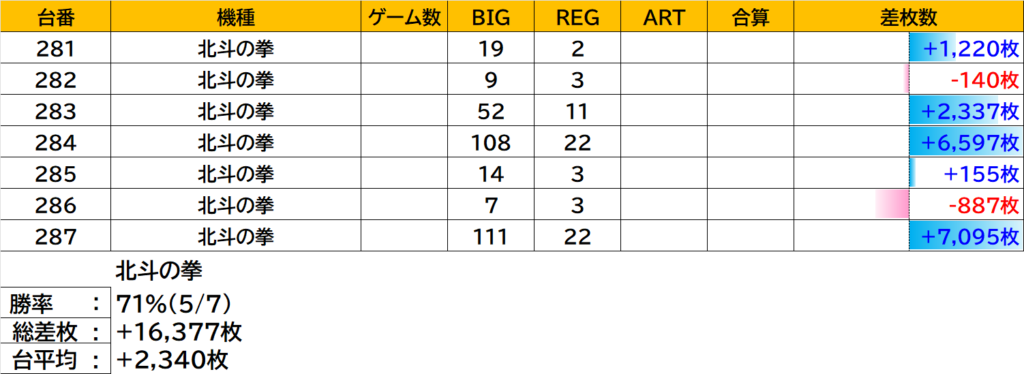 | 4 | 287 | 北斗の拳 | +7,095枚 |