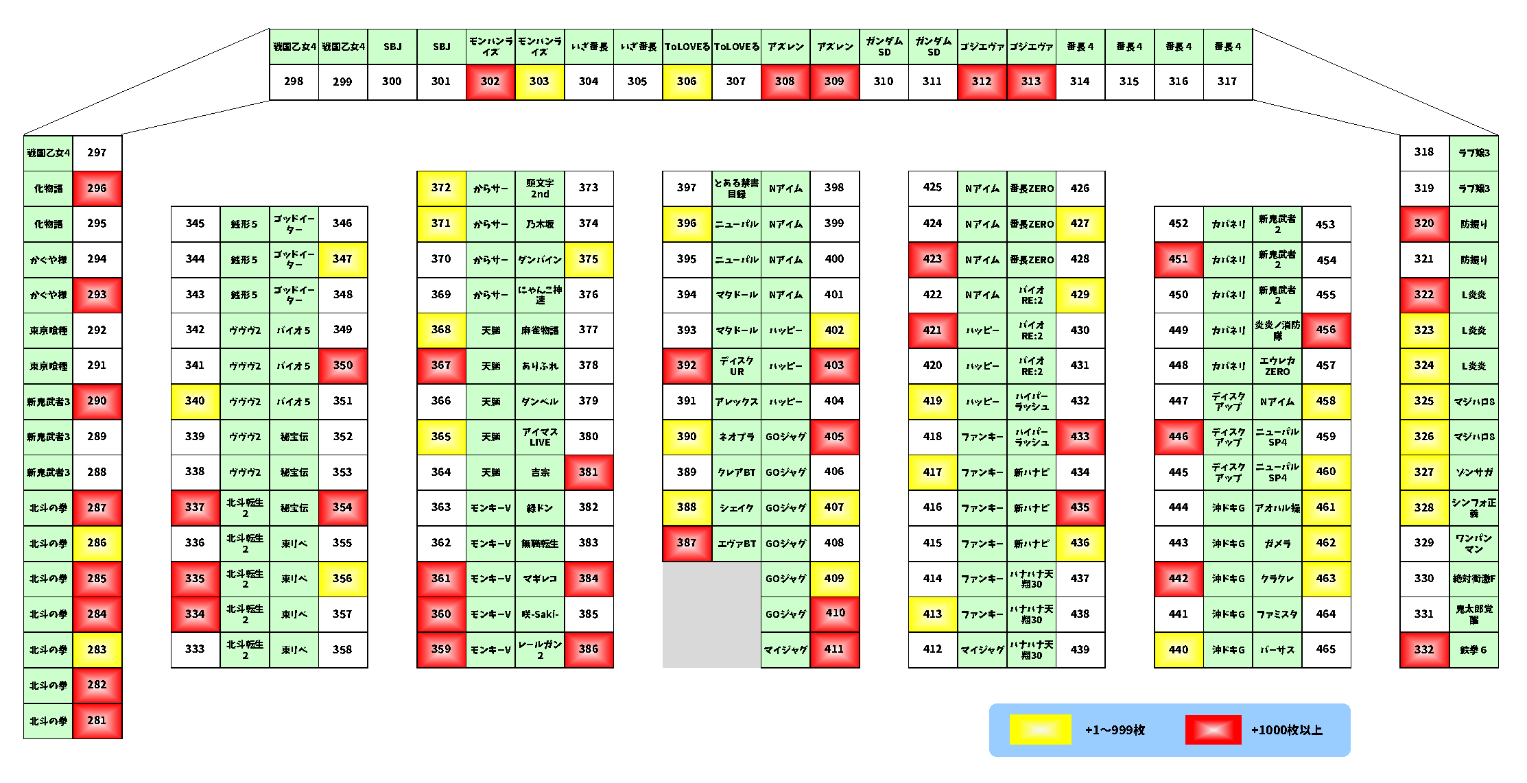 | 11 | 287 | 北斗の拳 | +4,776枚 |
