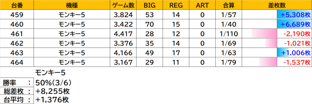 | 6 | 460 | モンキー5 | +6,689枚 |