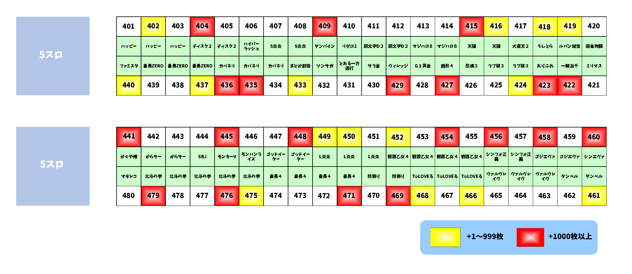 | 4 | 427 | 銭形4 | +4,745枚 |
