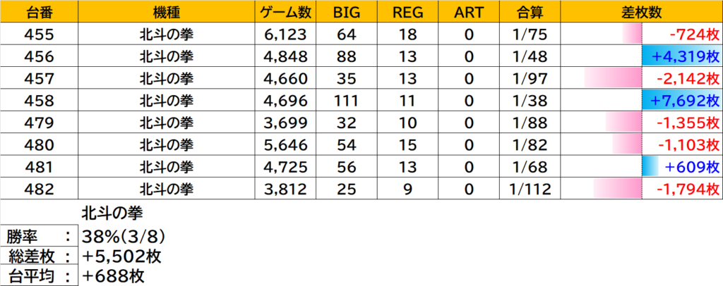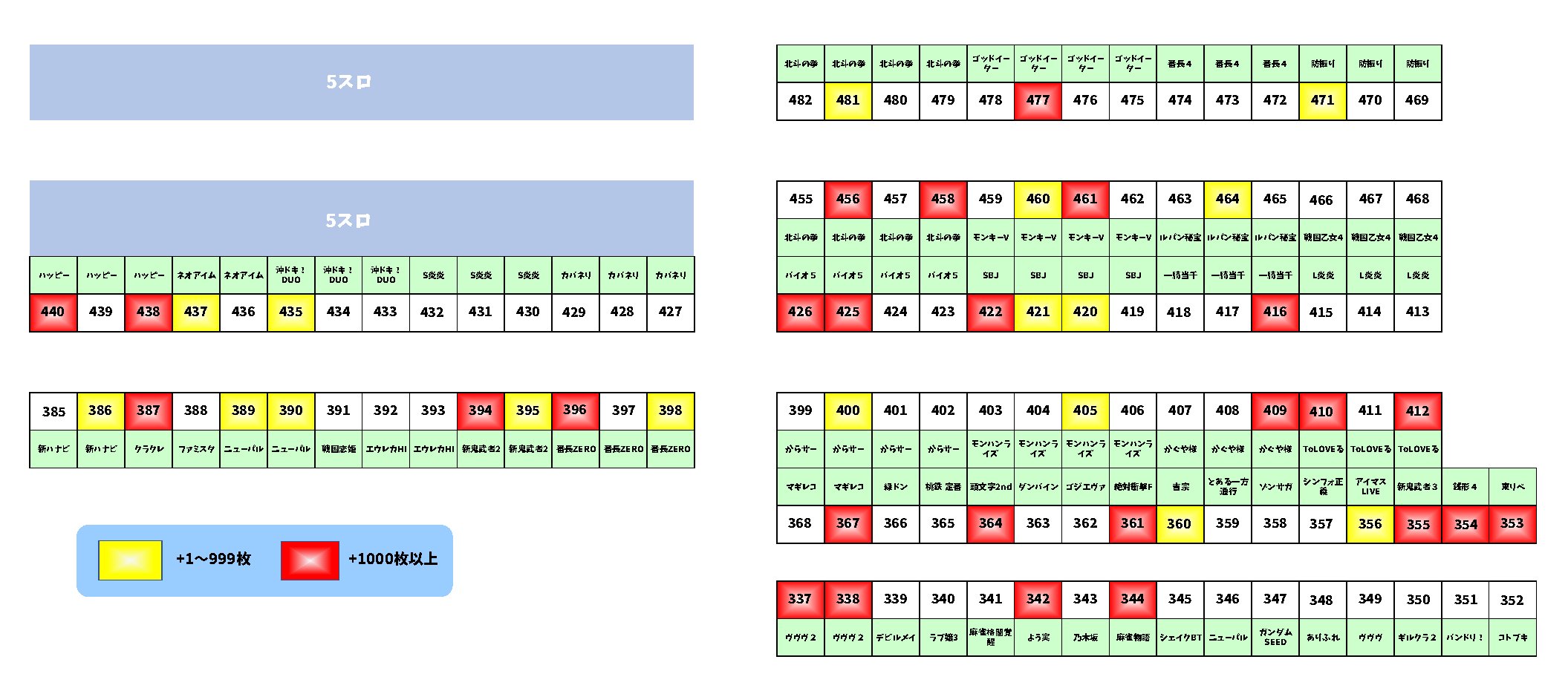 | 5 | 456 | 北斗の拳 | +4,319枚 |