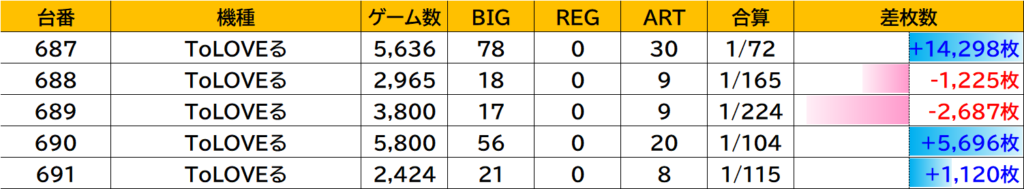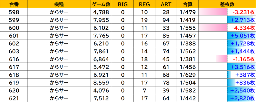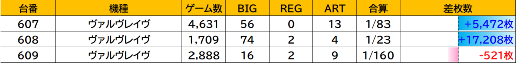 今回同時取材した各店舗の平均差枚はこんな感じに。。。\(^o^)/
