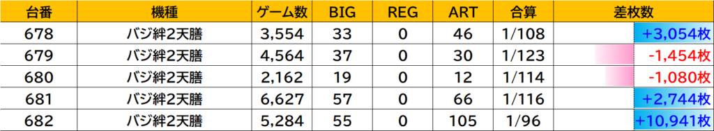18 | 678 | バジ絆2天膳 | +3,054枚 |