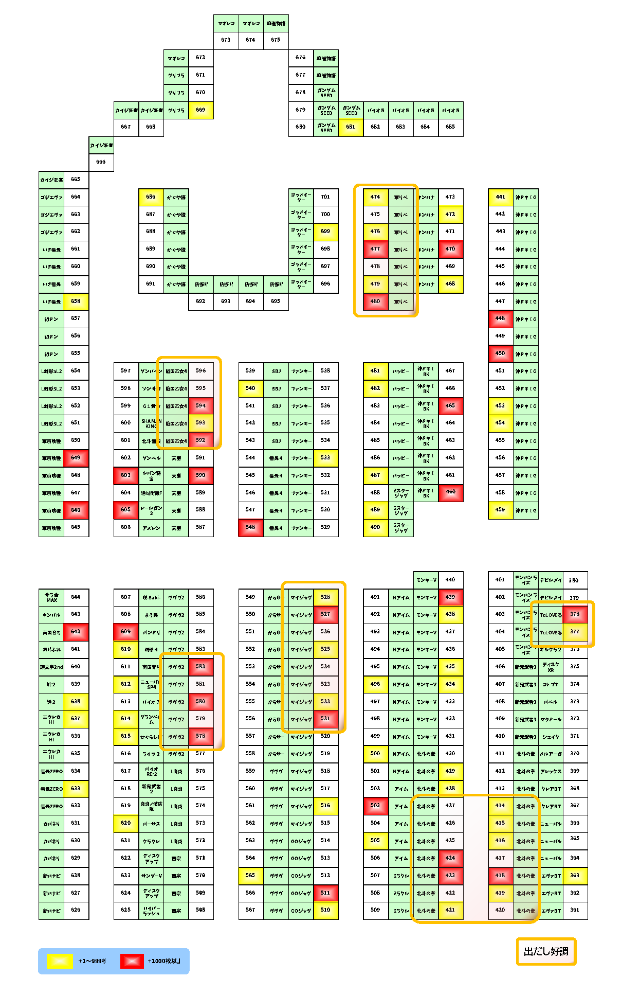機種別データをふくめて、分析したところで、出だし好調なゾーンをマーキングしてみました。
