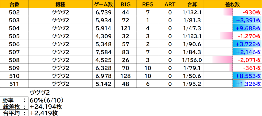 ヴヴヴ2,マギレコはターゲットに選んでないけど、全台系・超高配分を思わせるデータだ。