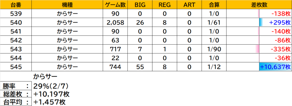 | 20 | 391 | 沖ドキG | +1,610枚 |