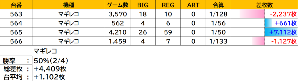 | 28 | 426 | GOGOジャグラー | +1,432枚 |