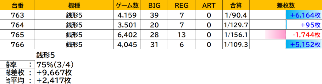 | 9 | 763 | 銭形5 | +6,164枚 |