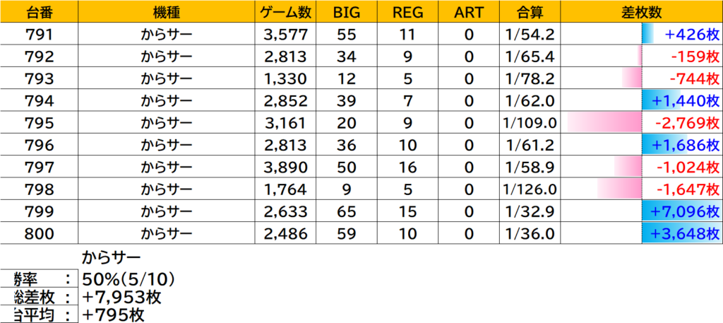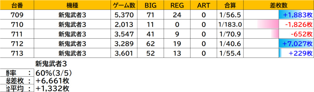 上位ランクの銭形5、新鬼3、ヴヴヴ2はターゲットに選んでないけど、全台系・超高配分を思わせるデータだぞっ!