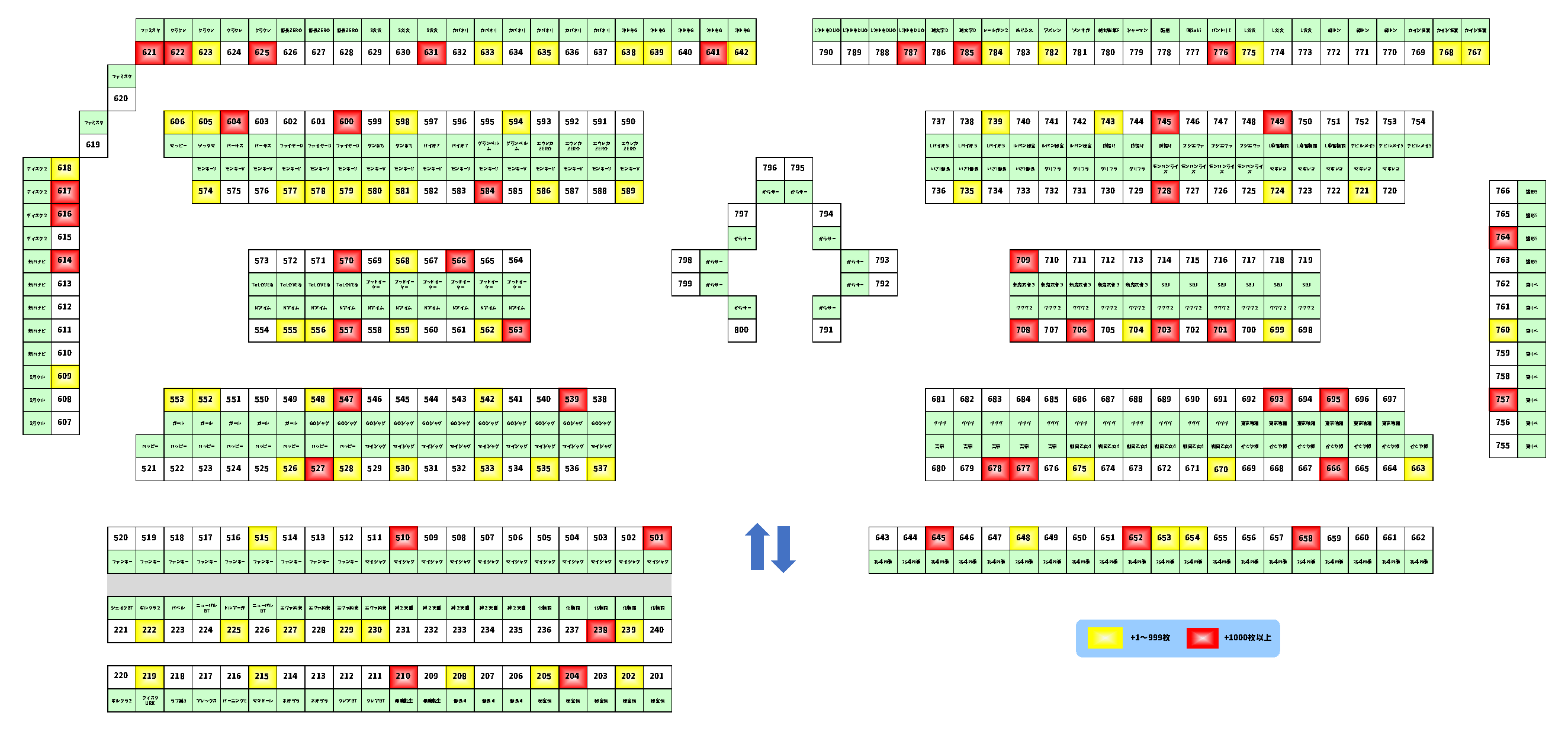 色付き台が全館から出現。しかもところどころ固まっています。