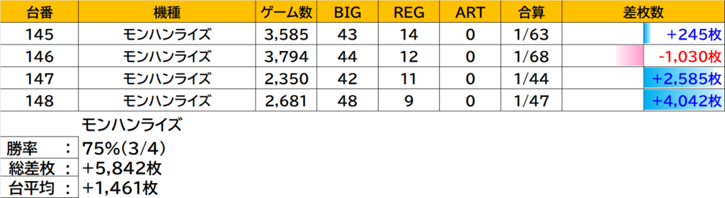 | 16 | 192 | 番長ZERO | +1,610枚 |