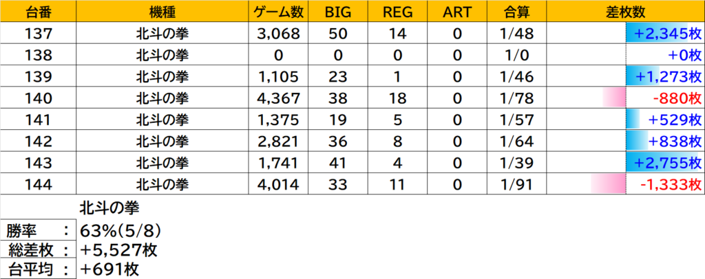 | 7 | 143 | 北斗の拳 | +2,755枚 |