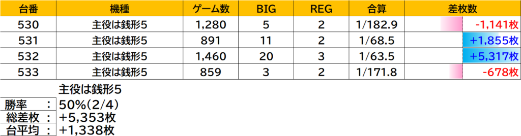 | 30 | 主役は銭形5 | 531 | +1,855枚 |