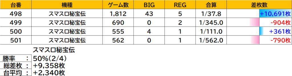 | 53 | 沖ドキGOLD‐30 | 381 | +1,159枚 |