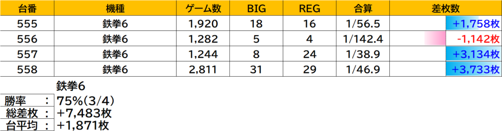 | 6 | スマスロ北斗 | 521 | +6,365枚 |