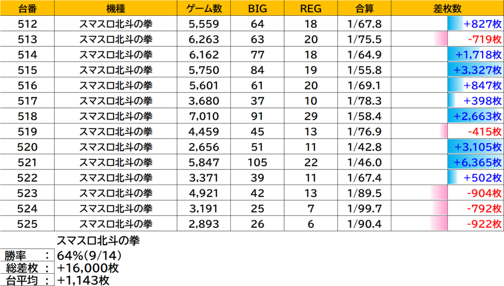 | 16 | スマスロ北斗 | 515 | +3,327枚 |