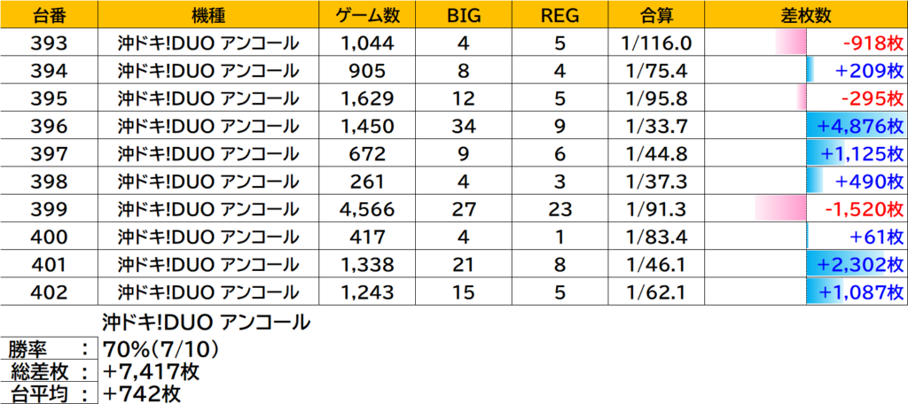 | 55 | 沖DUOアンコール | 402 | +1,087枚 |